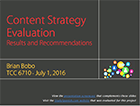 | Content Strategy Evaluation This presentation summarizes the results of a content inventory, audit, and analysis of an educational website that offers instructional content for people interested in learning Spanish. Open project PDF |